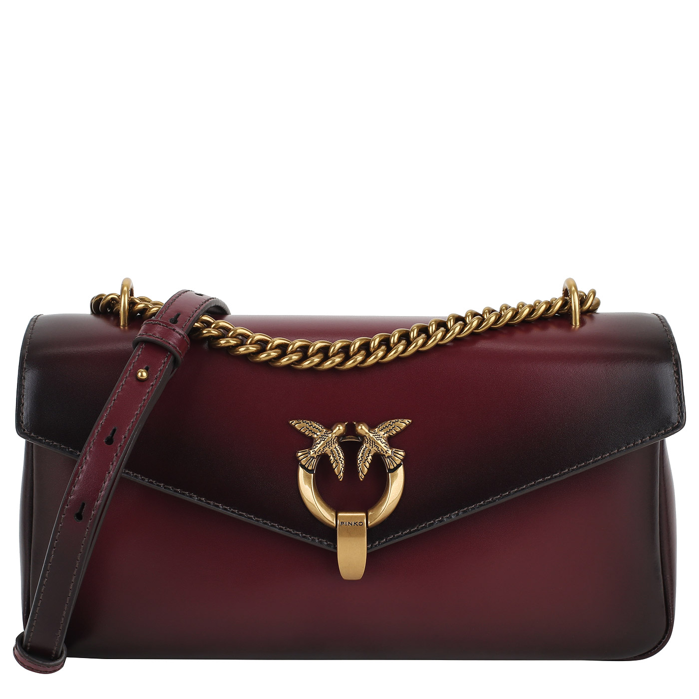 Сумка через плечо с цепочкой Pinko Cupido 101750-A17X/WW5Q_ribes - 2000558503983 бордовый натуральная кожа 27,5 x 13,5 x 7,5 Цена 38080 руб. купить в интернет-магазине PanChemodan.ru в Казани