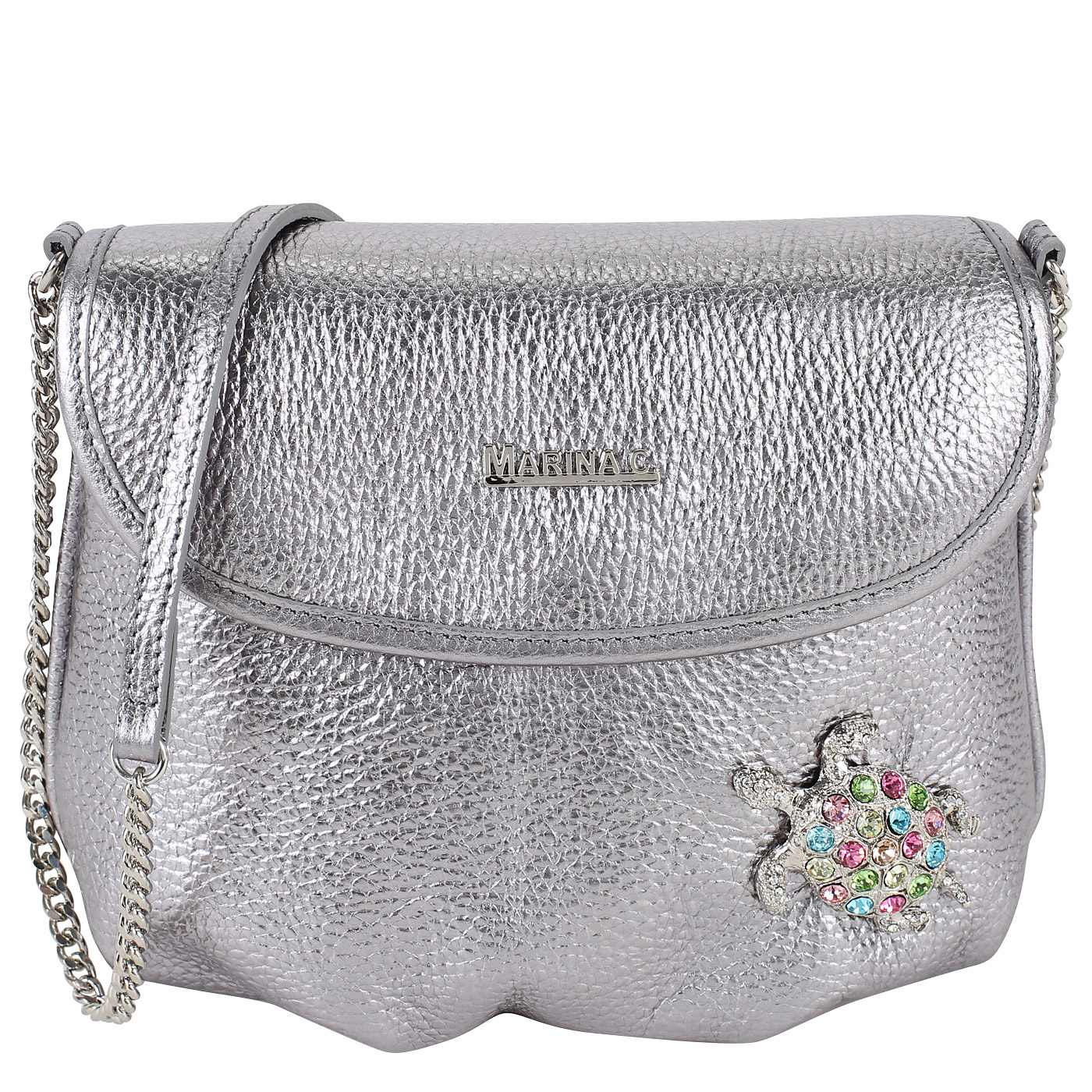 Сумка через плечо Marina Creazioni ACC 3379 3900_lam.piombo_pc - 2000558656566 серебряный натуральная кожа 22 x 17 x 7 Цена 7592 руб. купить в интернет-магазине PanChemodan.ru в Казани