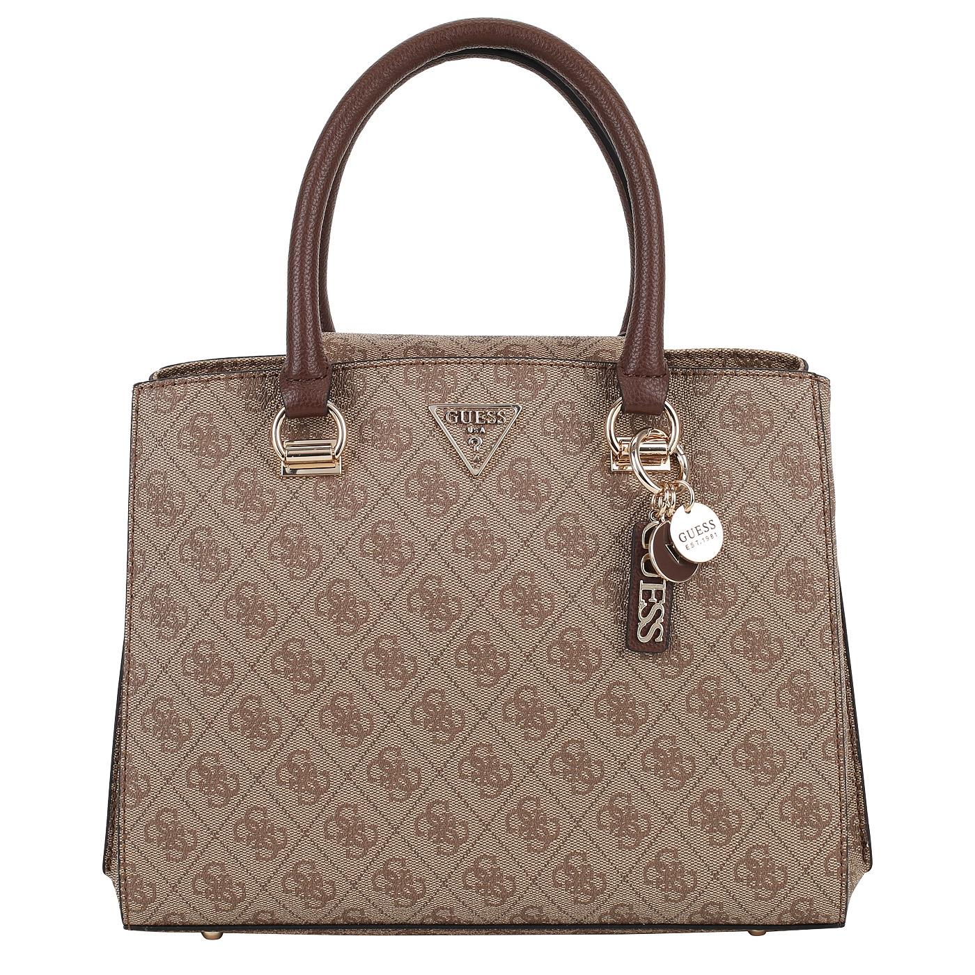 Сумка с двумя ручками Guess Noelle HWBG78 79060_latte logo/brown - 2000558623483 бежевый полиуретан 31 x 23 x 11,5 Цена 21700 руб. купить в интернет-магазине PanChemodan.ru в Казани