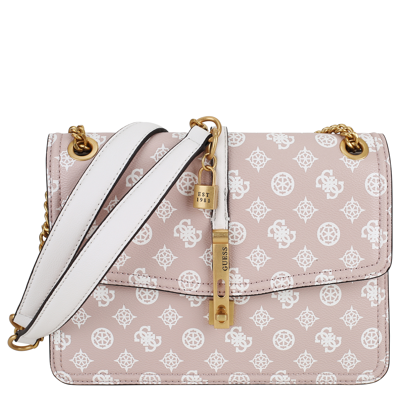 Сумка с цепочкой Guess James Logo HWPA89 70210_rosewood logo - 2000558552738 розовый полиуретан 28 x 19,5 x 5 Цена 12780 руб. купить в интернет-магазине PanChemodan.ru в Казани